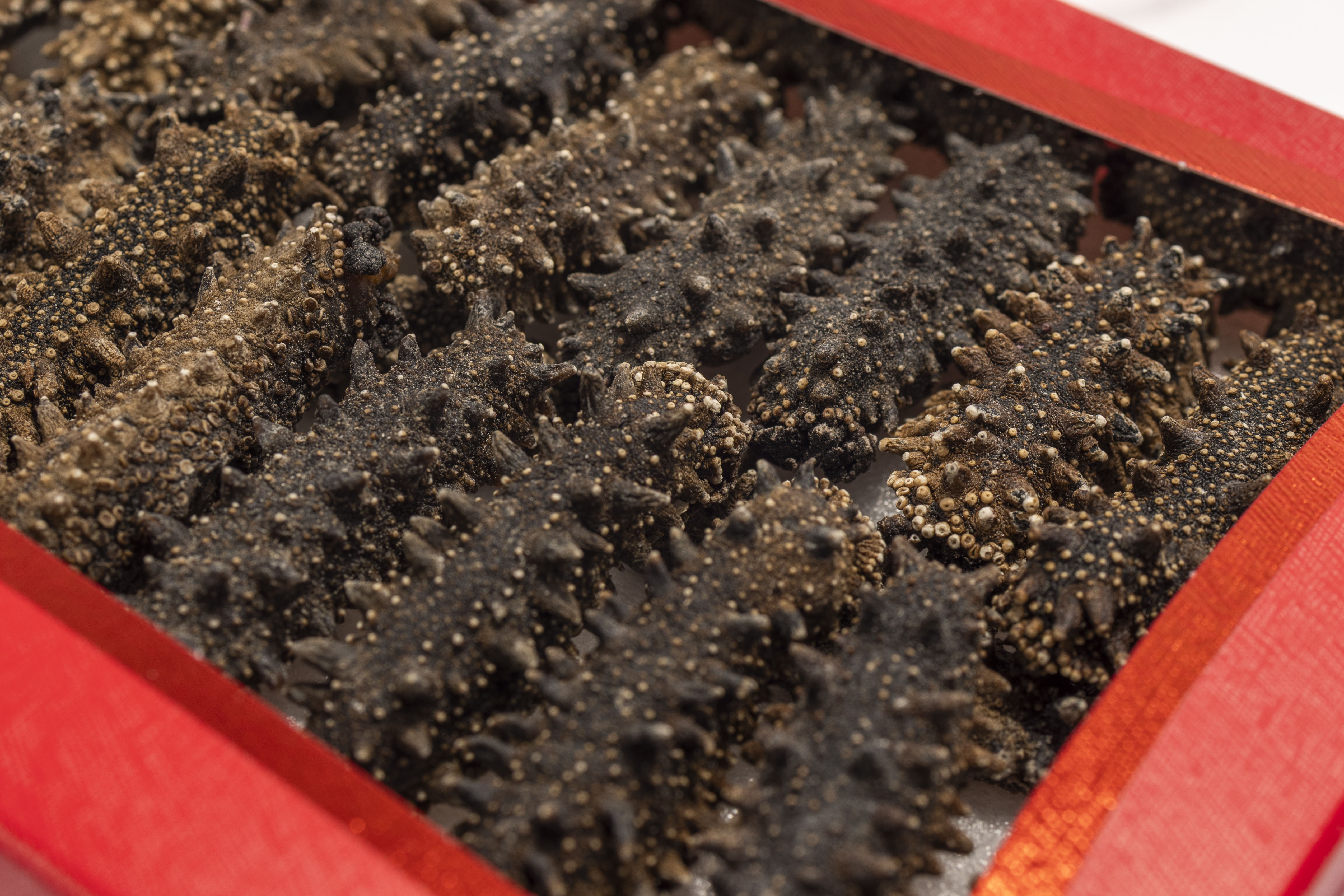 黝黑多刺,肉刺挺拔,日本關東地區的遼參品質較佳,是海參價錢中最貴。主產於日本東北及關東地區,因地理氣候及水質關係,其生長速度比較緩慢,所出產的遼參質素亦較佳;關東地區的海參隻形不大,體壁肥厚,海參肉質細糯,